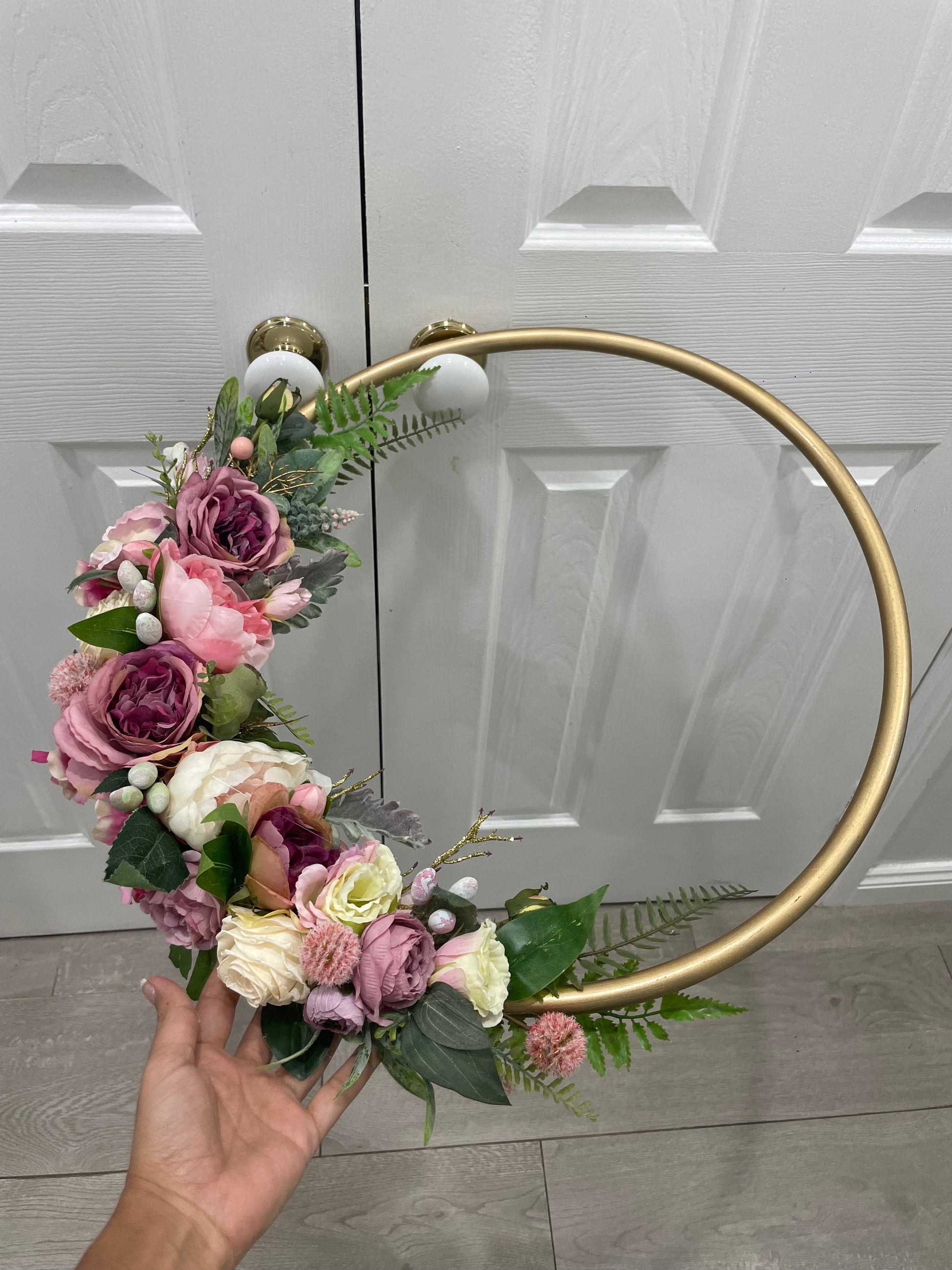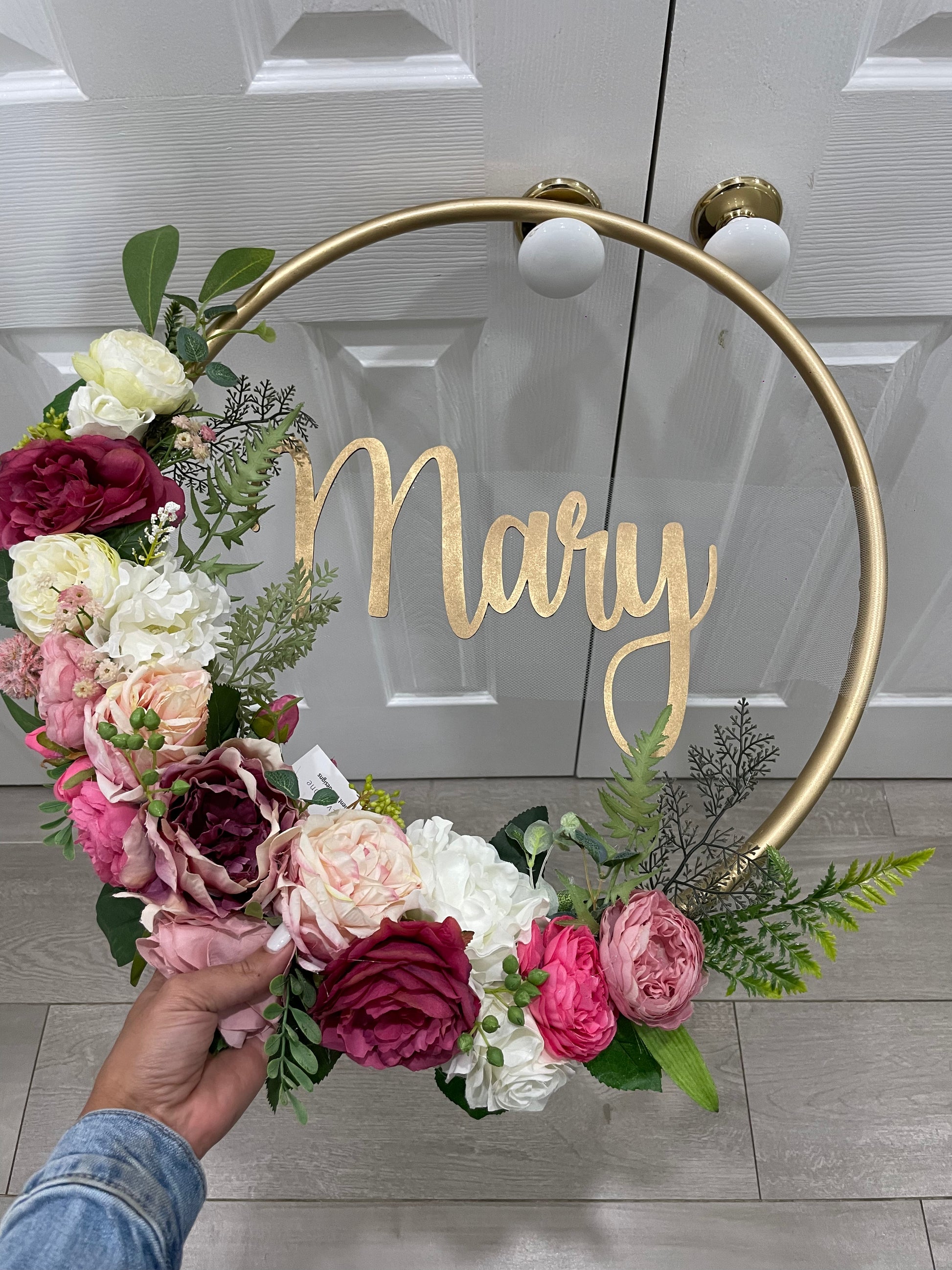 Elevate your special moments with our breathtaking custom floral hoop decorations, expertly crafted to bring elegance and individuality to any event or space!